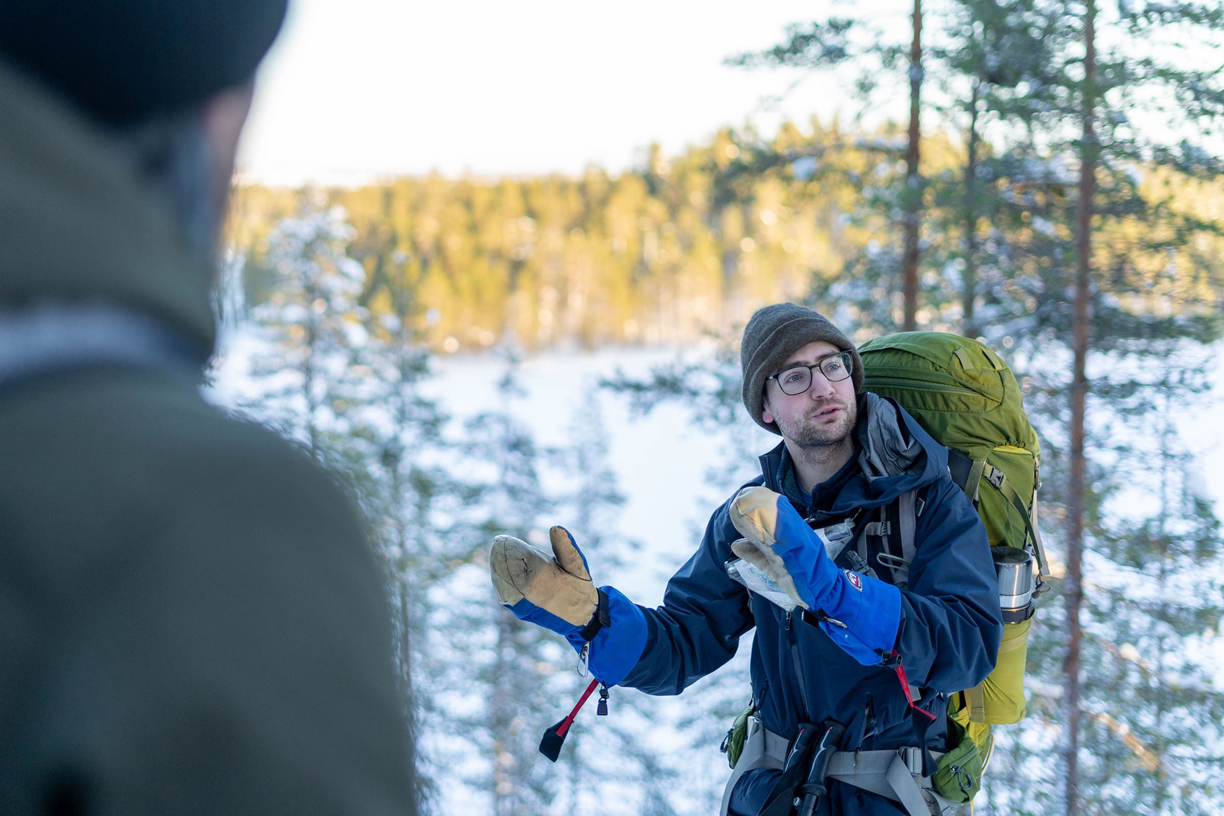 We laten de wildernishutten achter ons en verplaatsen ons over heuvelruggen en meren. We genieten van enkele vergezichten en een typische Finse maaltijd bij het kampvuur.