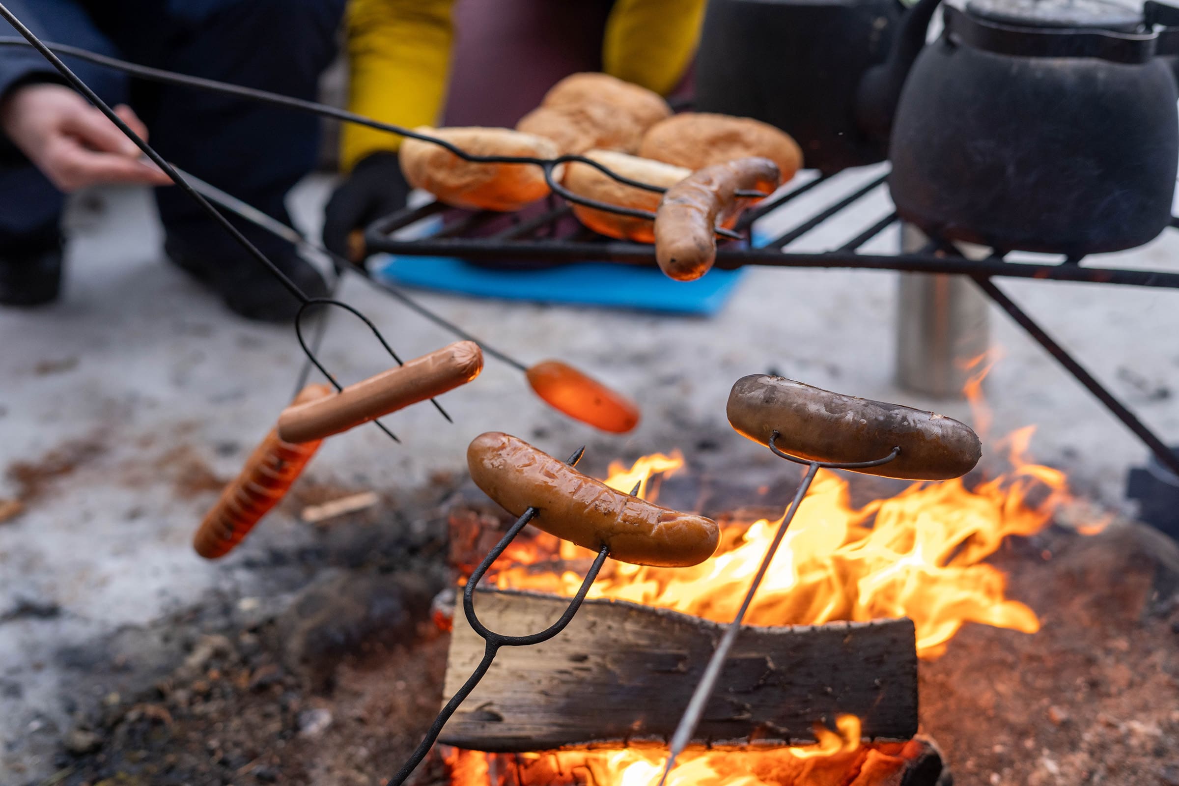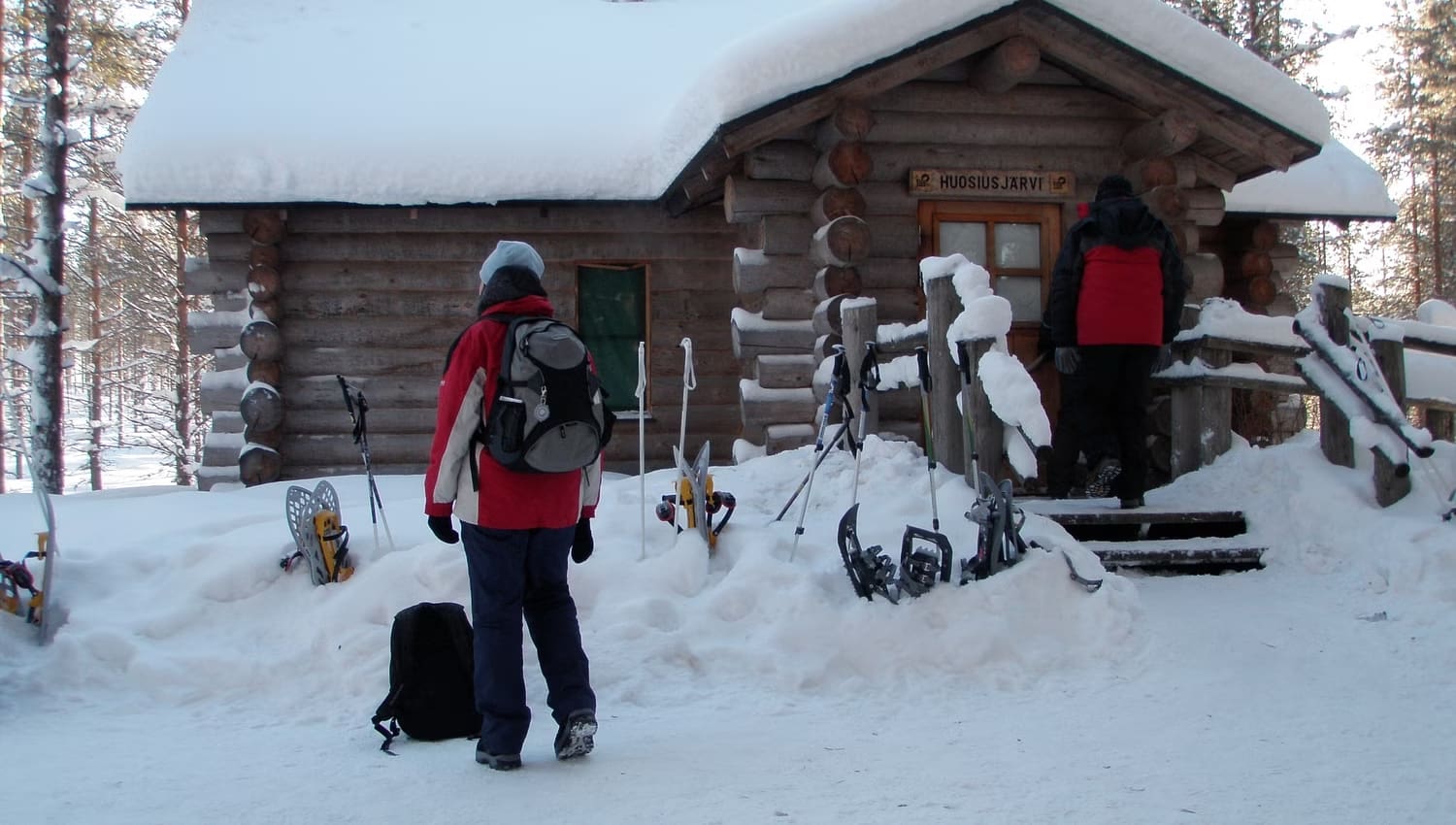 We lunchen bij een gezellig kampvuur en zetten nadien onze tocht verder richting de wildernishutten Iikoski en Huosiusjärvi, onze slaapplek voor deze nacht. Geen elektriciteit of stromend water, wel de warmte van de houtkachel en een traditionele op hout gestookte sauna. De dag eindigen met een duik in de sneeuw? Ja, graag!